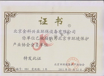 北京市环境保护产业协会会员单位证